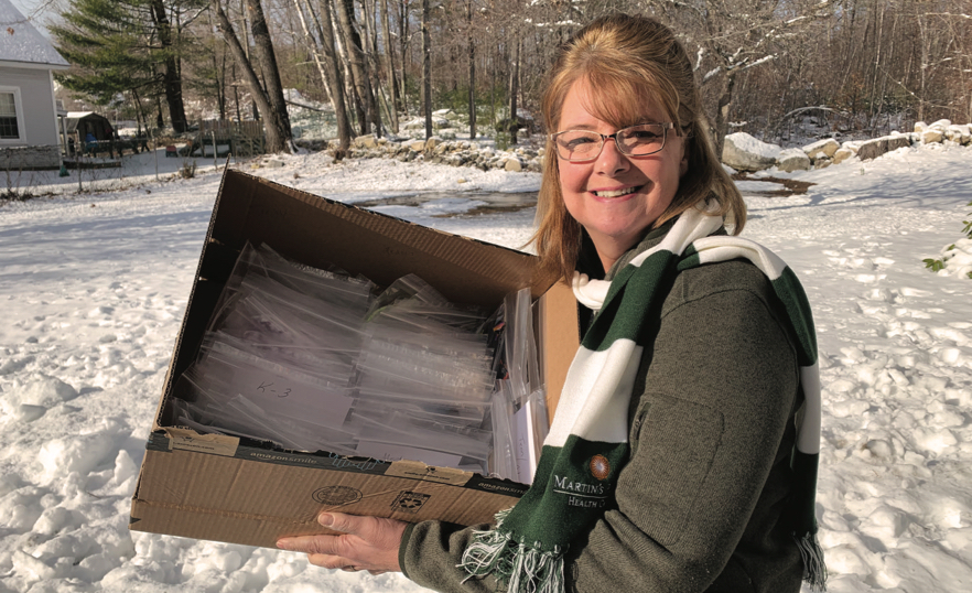 When the pandemic started, Susan Rivet, Health Plan Care Manager, knew she wanted to make a difference. When she started getting requests from parents for the custom-made, kid-size face masks she had sewn for her grandchildren, the lightbulb switched on. Soon she was using her Martin’s Point VTO to join three friends mass-producing pint-size masks for local students. To the delight of Lakes Region School District teachers and young students alike, Susan’s “Protecting Students from COVID” project delivered 340 little masks bedazzled with glitter, Disney characters, favorite animals, and bright colors. In Susan’s words, “This has been a tough year for everyone, including schools that have gone beyond their budgets to make classrooms COVID safe. Making masks was a heartwarming way to make a difference in my community.